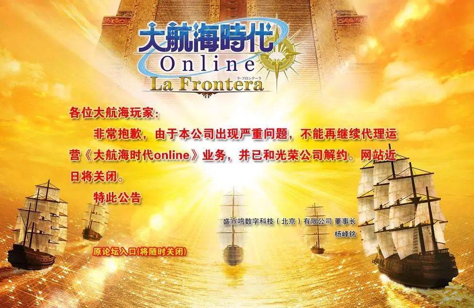 《大航海时代OL》最早是由盛宣鸣在2006年拿下代理权,游戏公测曾经创下了40万同时在线的成绩。盛宣鸣随后又拿下了《信长之野望OL》代理,成为光荣网游在国内的总代理人。