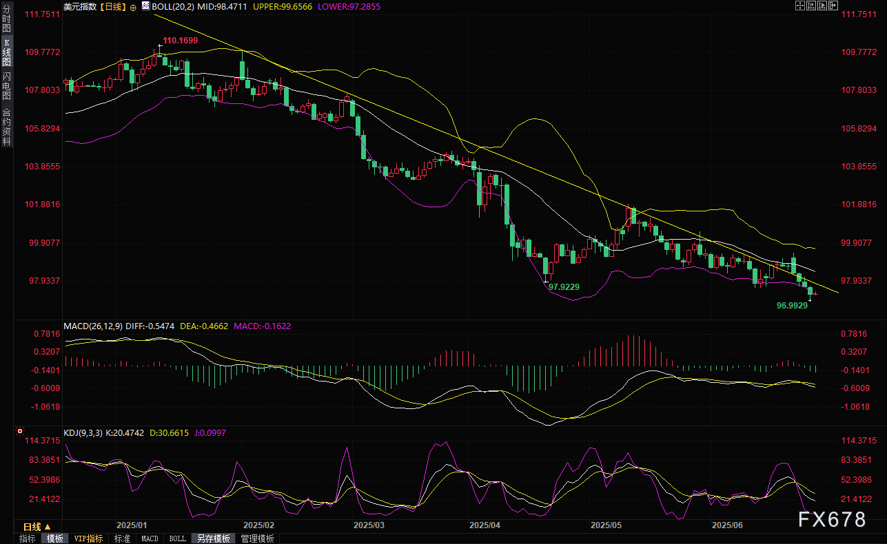 汇通财经APP讯——美元正经历一场前所未有的低谷,周五(6月27日)美元指数徘徊在三年半以来的最低点附近,交易员们正密切关注美国货币政策的风向转变。与此同时,欧元和英镑强势崛起,守在隔夜触及2021年底以来的最高水平附近恒盈配资,而特朗普即将到来的关税最后期限,更是为市场增添了一层紧张气氛。美联储主席鲍威尔的继任者传闻、鸽派政策预期、以及地缘政治局势的缓和,共同塑造了当前汇市的复杂格局。