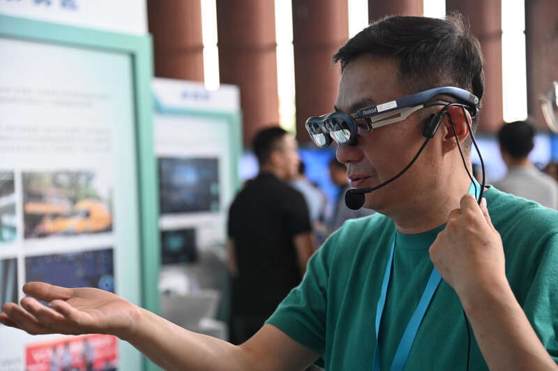 参加2025年全国低碳日主场活动的与会代表体验AI生态应用场景。中青报·中青网记者 李剑平/摄